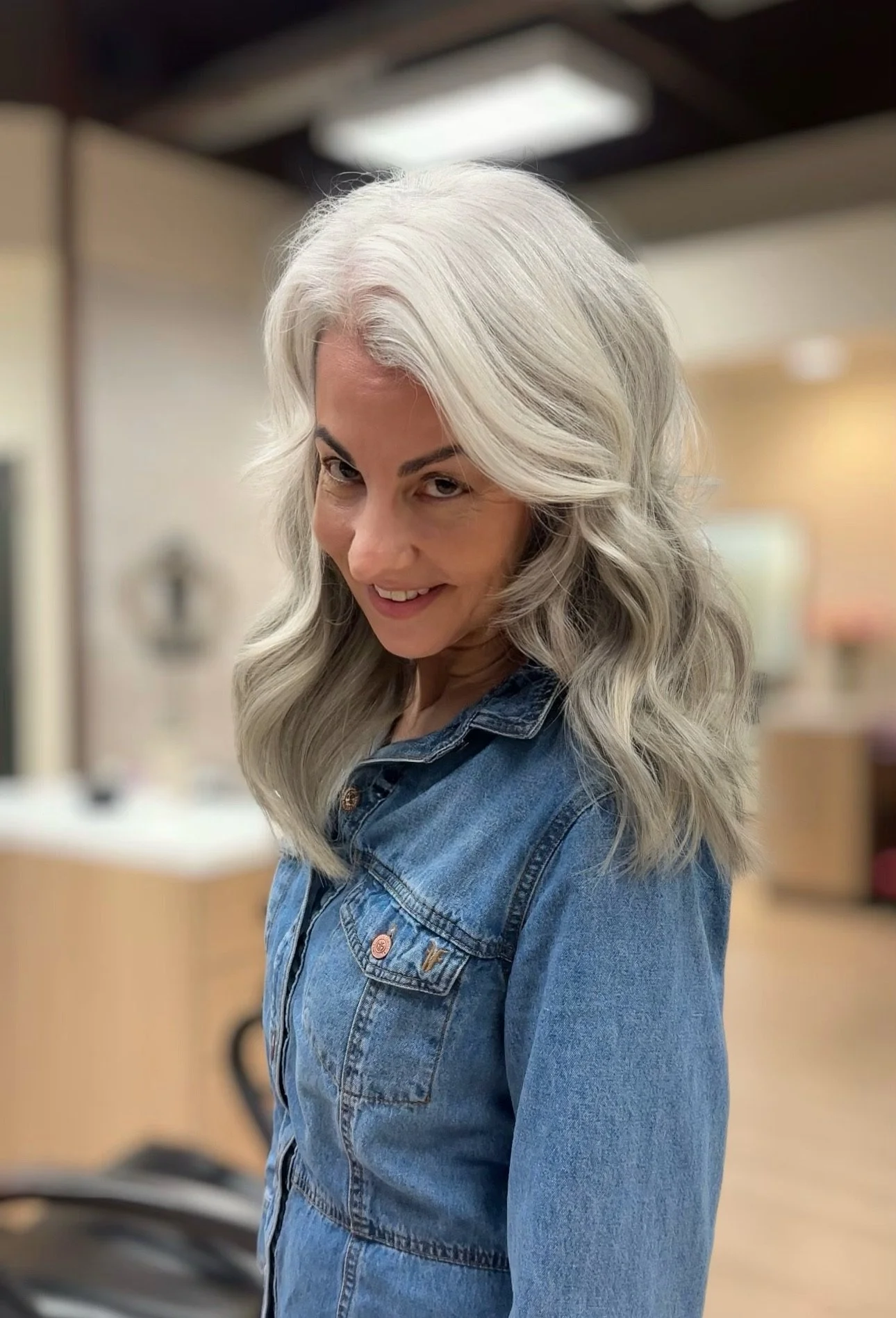 Gray Blending: Uses dimension, tone, and placement to soften the contrast. Your grays become part of your look—not something to hide.