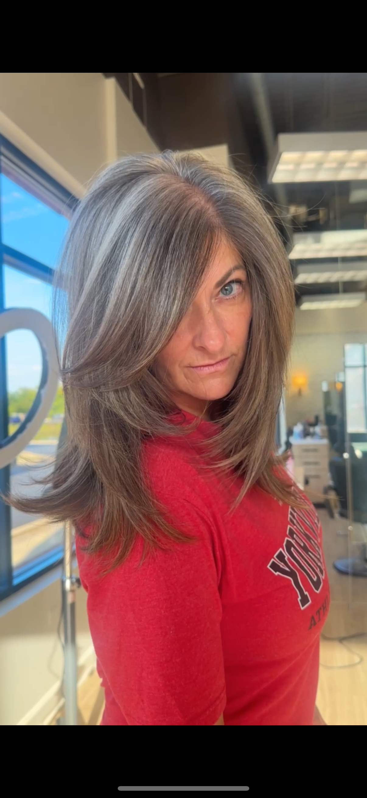 Gray blending is a journey, not a one-time event. Your stylist will guide you through each stage so you feel comfortable with every step.
